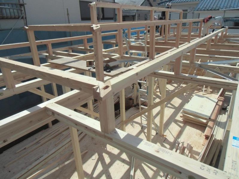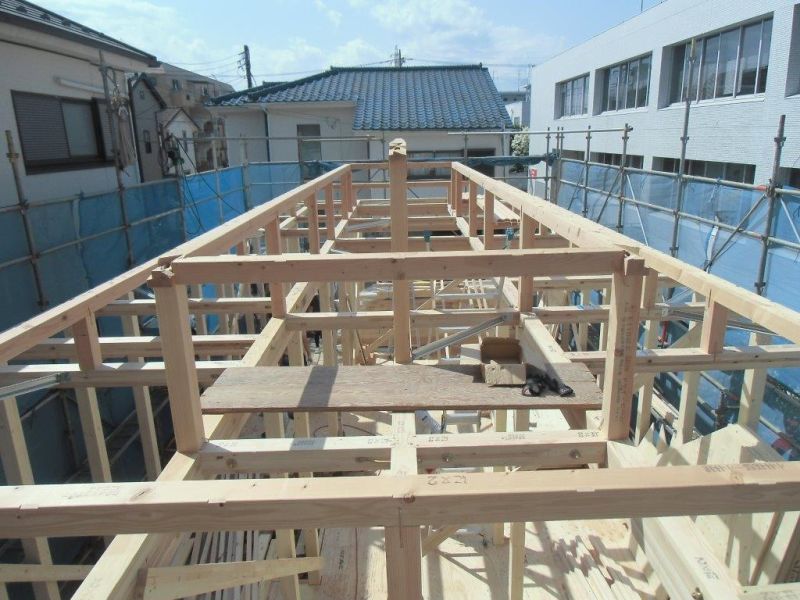 本日、小平市で上棟しております。お天気も良く早朝から大工さん・現場監督が頑張っています。