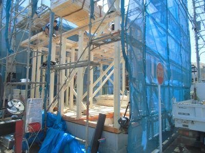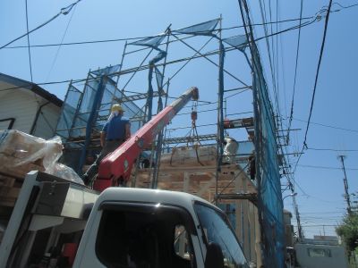 本日、小平市で上棟しております。梅雨に入り雨の日が多く現場監督もいつ上棟しようか天気予報を見ては予定を組み大変のようです・・・