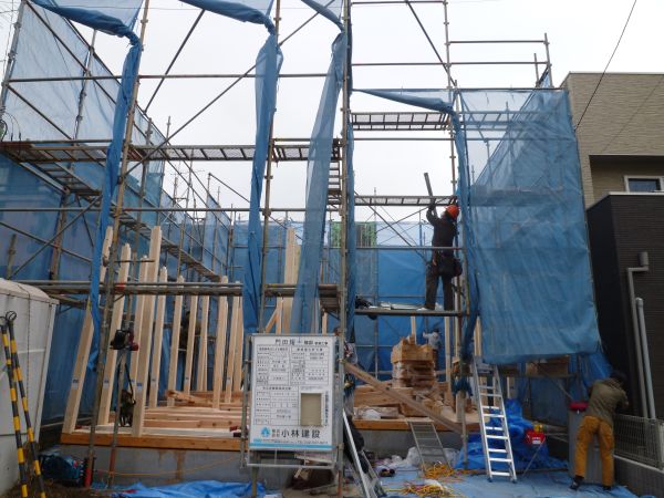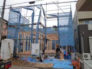 こんにちは!本日、小平市で上棟しております。早朝から大工さん方寒さの負けず頑張っています。