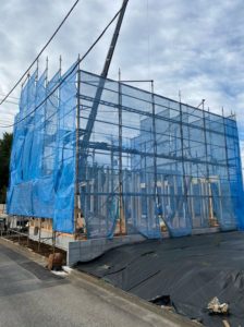 本日、小平市で上棟しております。大工さん方・現場監督が頑張っております。