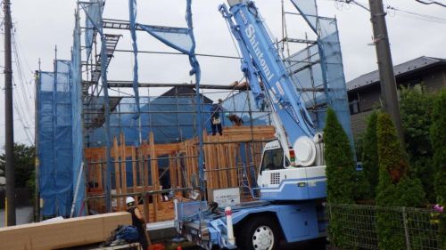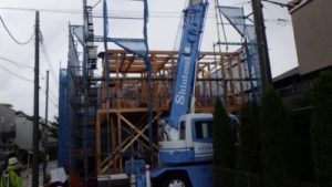 皆さんおはようございます。本日、小金井市で上棟しております。