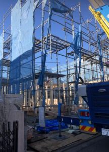 本日、府中市で上棟しております。お天気も良く☀上棟日和です・・・早朝から大工さん・建て方屋さん現場監督が頑張っています!