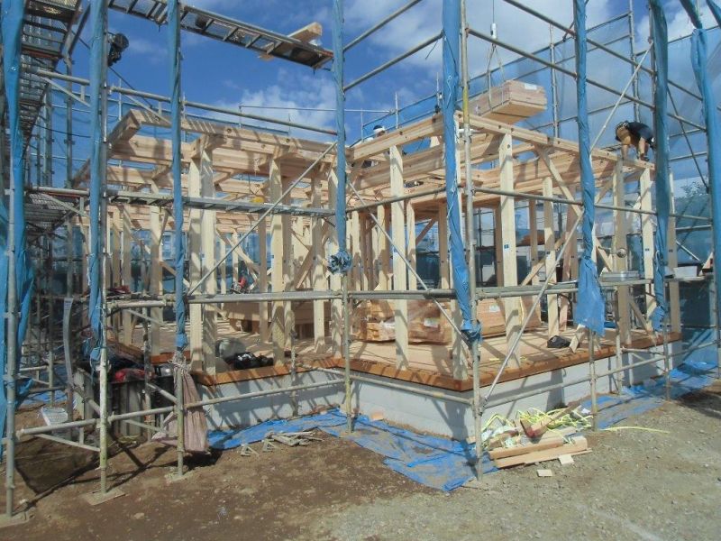 昨日、東大和市上北台で上棟致しました。お天気も良く早朝から大工さん方が頑張っていました・・・