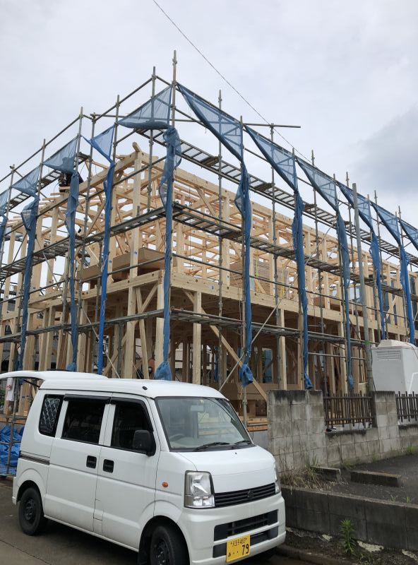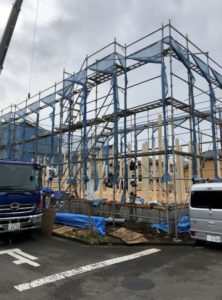 I様邸は二世帯住宅の大きなお宅です! 朝から大工さん・建て方屋の皆さん・現場監督が頑張っています。