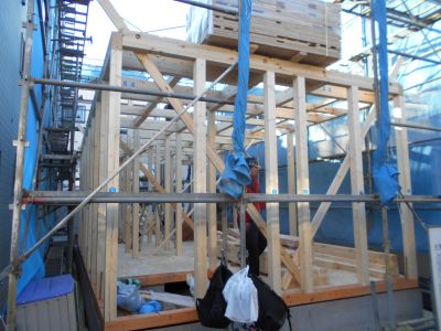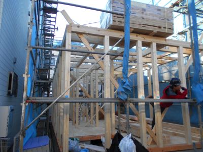 1月末に上棟した現場から近く散歩をしながら上棟している現場を見たお客様から「すぐ近くでも建っているのね・・・」とわざわざ寄って下さり「うちも見積もりお願いします!」と気にして見て頂き有難い事です。