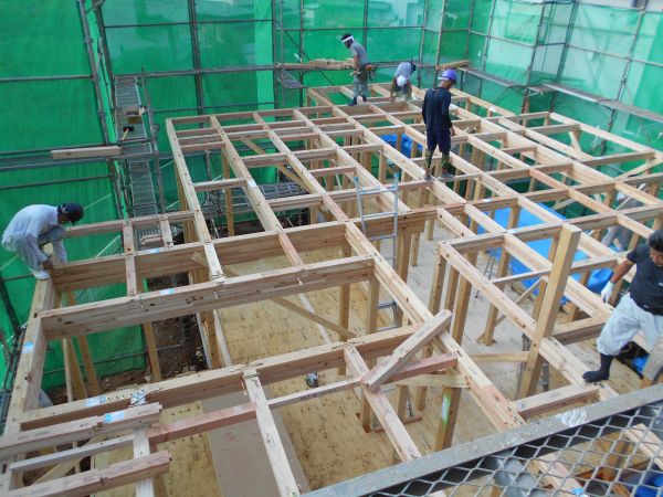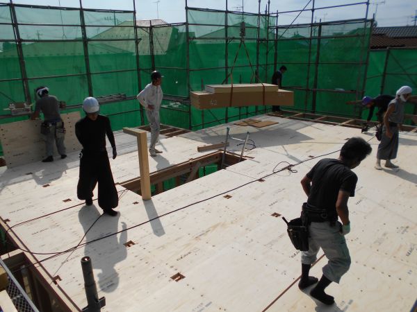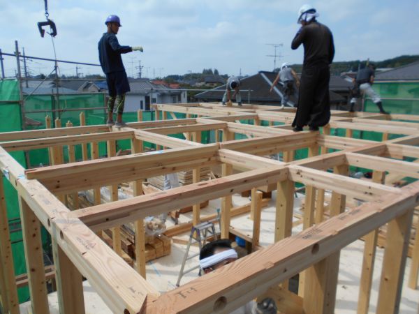 早朝から大工さん・建て方屋の皆さん・現場監督が張り切っていました。