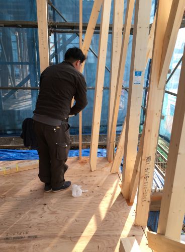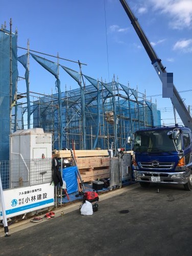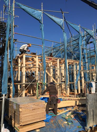 本日、武蔵村山市で上棟しております。2棟同時の上棟ですので活気があり早朝から大工さん方が張り切っています!