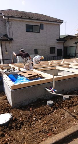 おはようございます。本日、武蔵村山市で上棟しております。お天気も良く上棟日和です!早朝から職人・現場監督が頑張っています・・・
