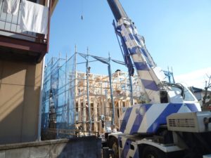 おはようございます。本日、羽村市で上棟させて頂いております。お天気も良く早朝から大工さん方・現場監督が頑張っています。
