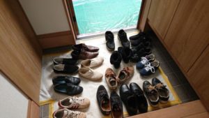 玄関に入りきれないほどの靴です! 大勢の方に来て頂いております。