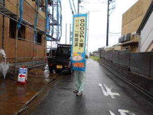 屋根はROOGA(ルーガ)を使っています! (旗を持っているのは水道屋さんの社長さんです・・特別出演中!)