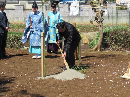 本日の地鎮祭の様子です。神主様もお二人来て下さり何とお一人が何年か前に建てさせて頂いた私共のお客様だったのです。びっくりです!!