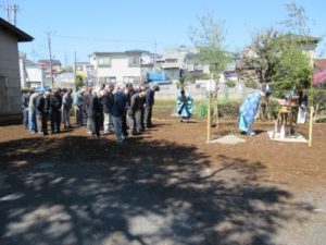 お天気も良く大安吉日の中、地鎮祭を地元の神主様・役員の皆様とご一緒に無事に行う事が出来ました。