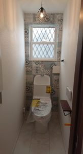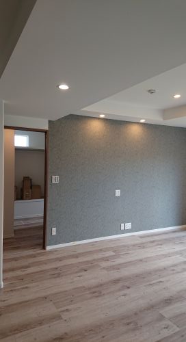 一面だけクロスを変え照明もとても素敵です!