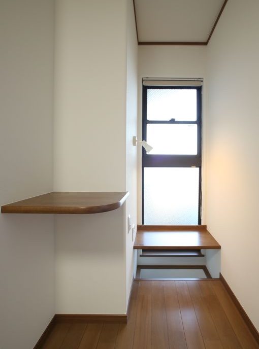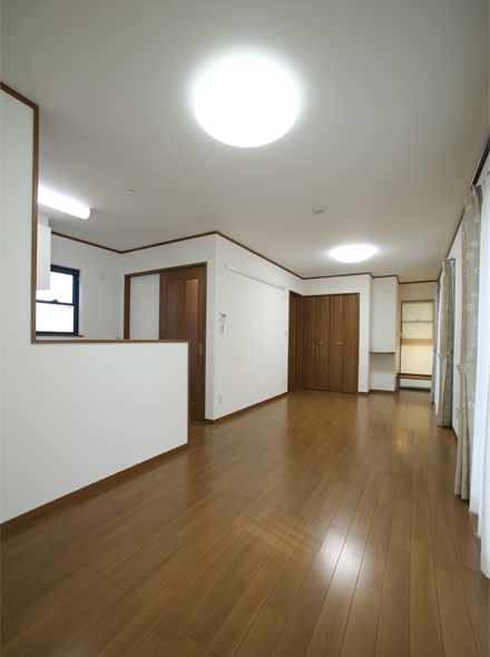 隣家との距離が気にならないように、日当たりの良い方向へベランダを広く作りました。家族みんなが集まるパソコンスペースは掘り炬燵のように造作し、長時間の作業も疲れないようになっています。