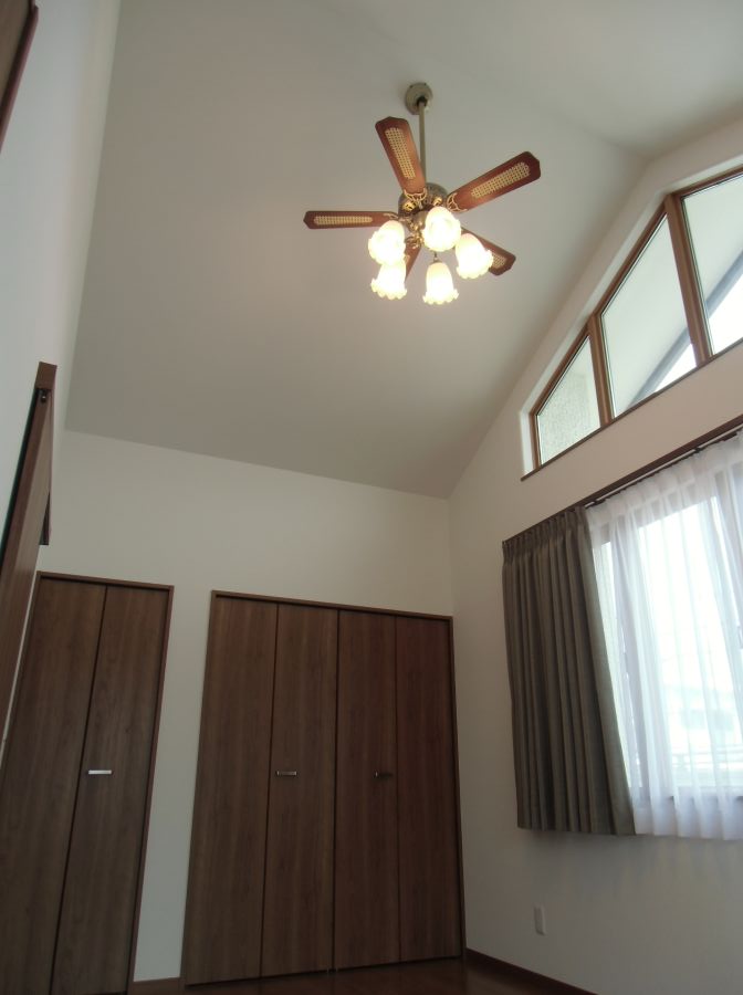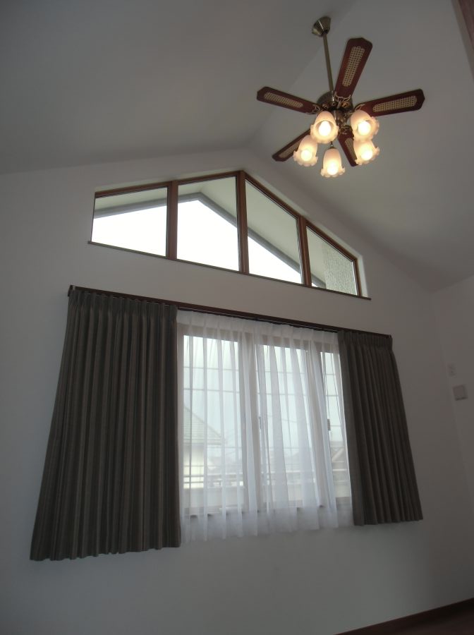 リビングやベランダを広く開放的に、将来のことを考えてお風呂も広めに、というご要望をいただき、天井も高く取り空間を広く取りました。ベランダをL字に取り軒の出を大きく取りました。
