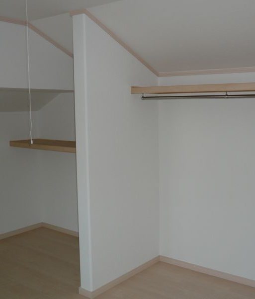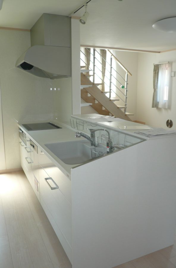 ☆南側隣家が接近しているため、LDKを2階に設置し、明るい家族団欒が楽しめるお家に。屋根裏のスペースを利用し、ご希望のウォークインクロゼットをつけました。ストリップ階段を使用し開放感を演出しています。