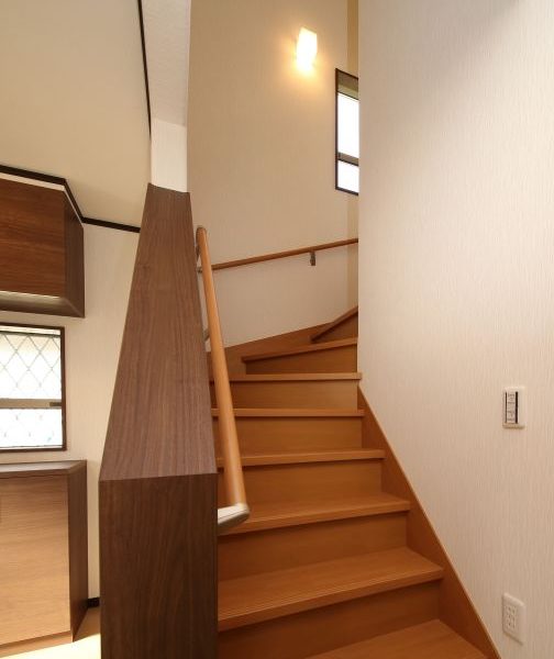 『車椅子でも生活しやすい家』というご希望を叶えるために、玄関へのアプローチを作り玄関ホールの床の段差も極力減らした作りになっています。
