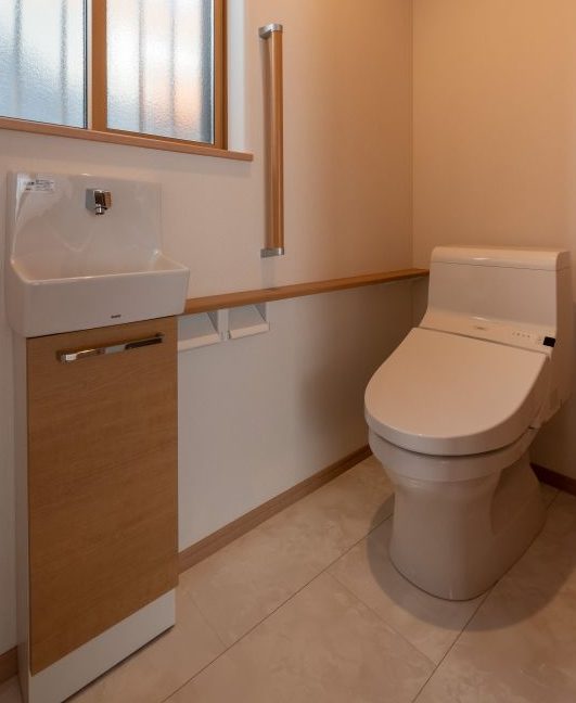 トイレにも手すりを付け安全性に気を付けました。洋間仕様の二間続きの和室で広々と・・・