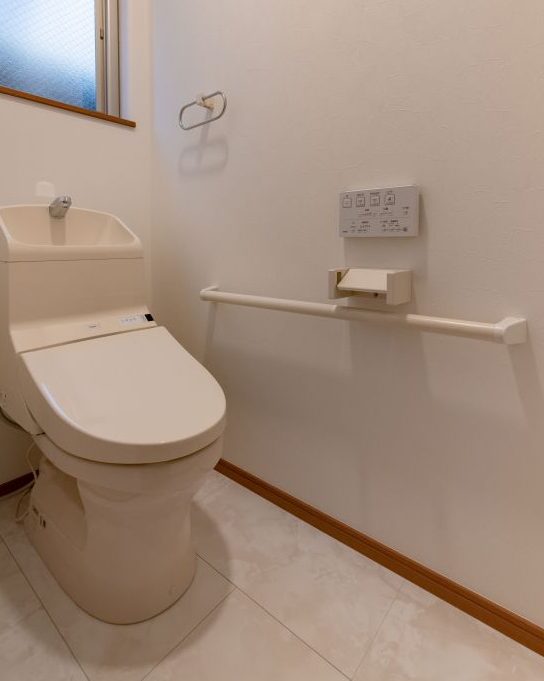 家族の様子がわかるようリビング階段にしました。トイレにも手摺を付けお母様も安心です。