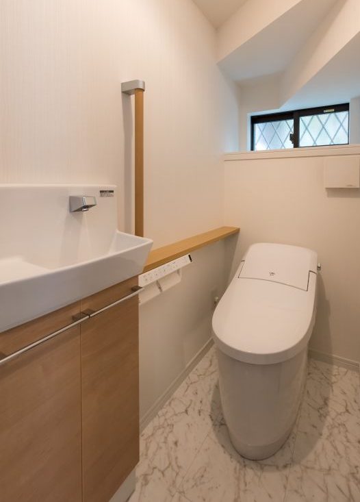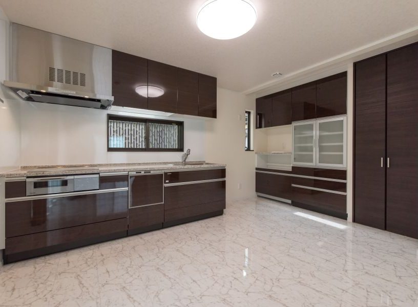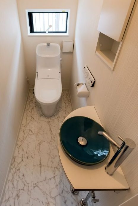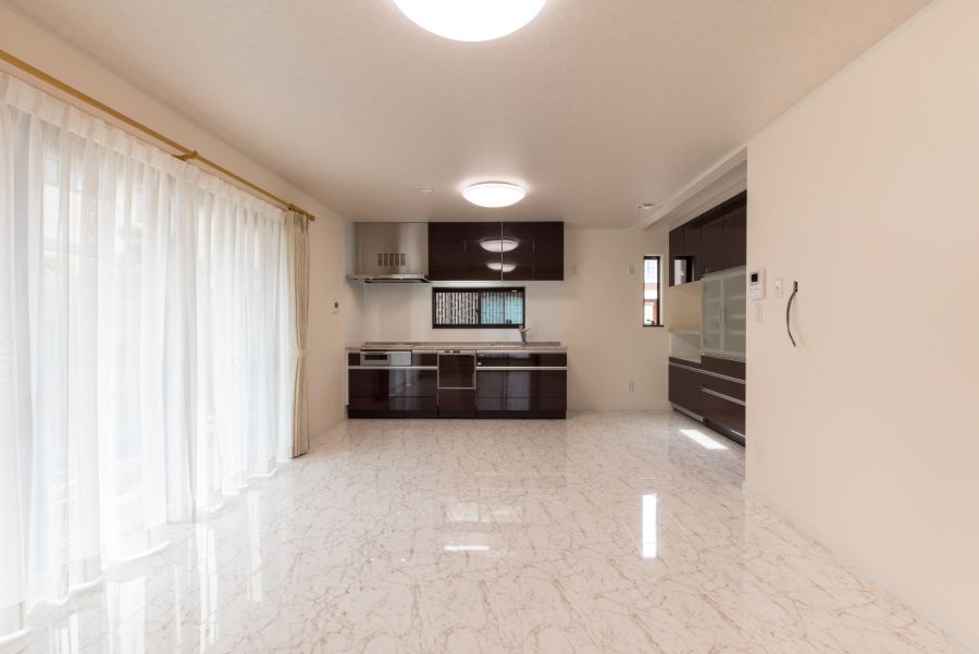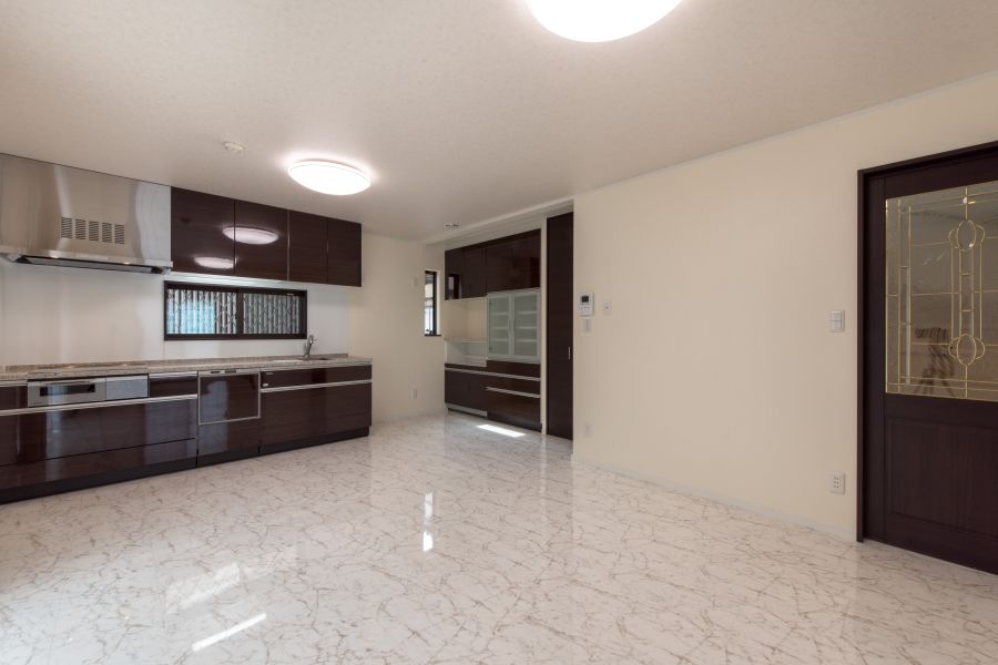 リビングに人造大理石風の床を貼り高級感を持たせ2階はイメージを変えかわいい感じに仕上げたこだわり住宅です。