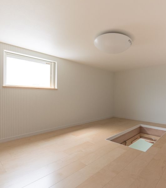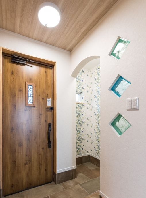 シューズクロゼットの脇の壁にガラスブロックを貼ったり小屋裏を作ったりこだわり満載のお宅です!