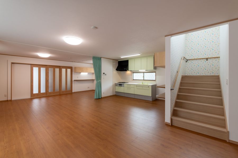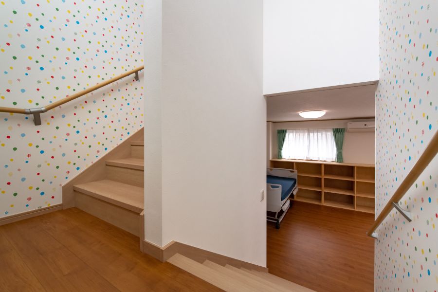 入浴スペース・エレベーター付き・階段も広くゆるやかにし上りやすくしました。